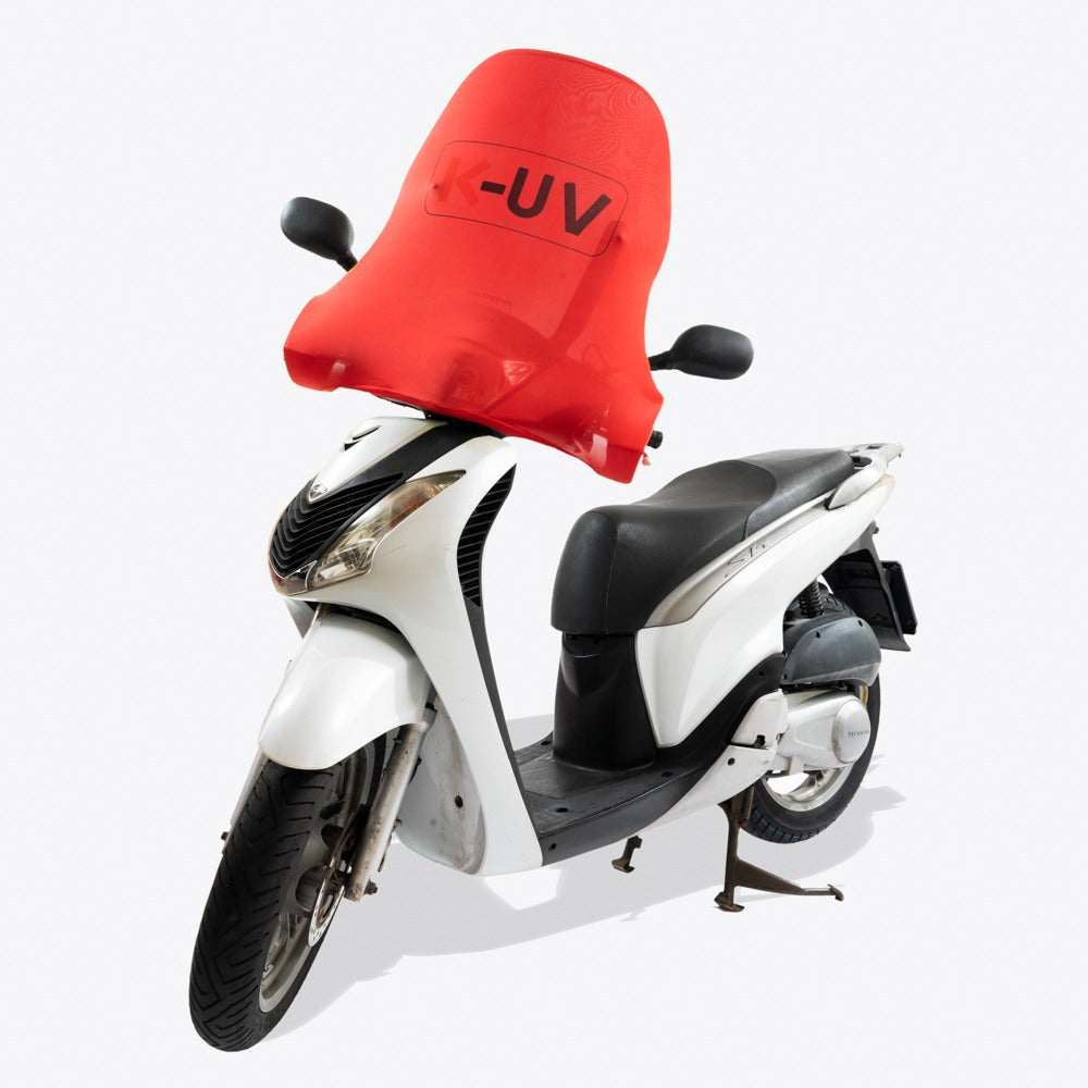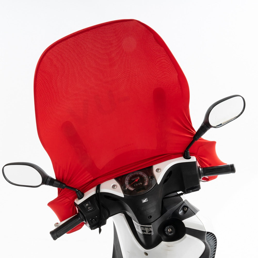 K-UV®, copri parabrezza in taglia universale in tessuto sintetico, elasticizzato impermeabile. Elastico e pratico si adatta a qualsiasi tipo di parabrezza per Scooter. Si ripiega in una tasca integrata e chiusa da un pratico cordino.